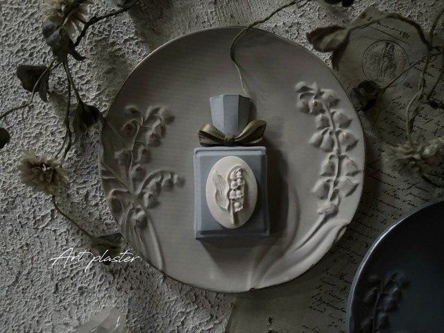 【 再再販 】すずらんの香水瓶プラスター 黒いレリーフの下敷きマット付き