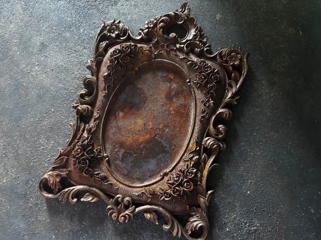 立体的なローズモチーフの錆エイジングがひときわ美しい長方形プレート