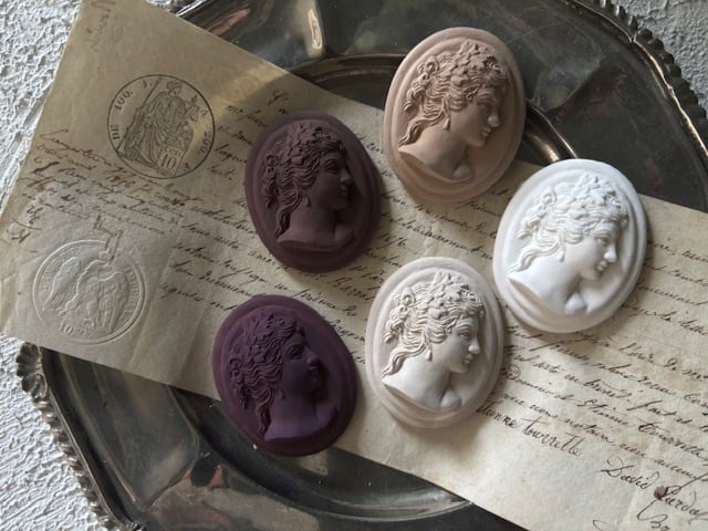 韓国の石膏を使って上品なくすみカラーがポイントのカメオ型プラスターを5個お箱にお入れしてお作りしました。
