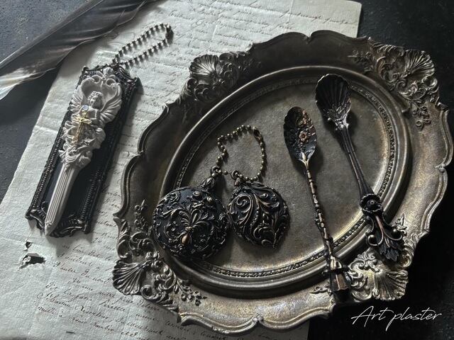 韓国の石膏を使ってアンティーク風インテリアの雰囲気を楽しめる、天使と剣をモチーフとした美しい手のひらサイズの壁掛けプラスターを作りました。