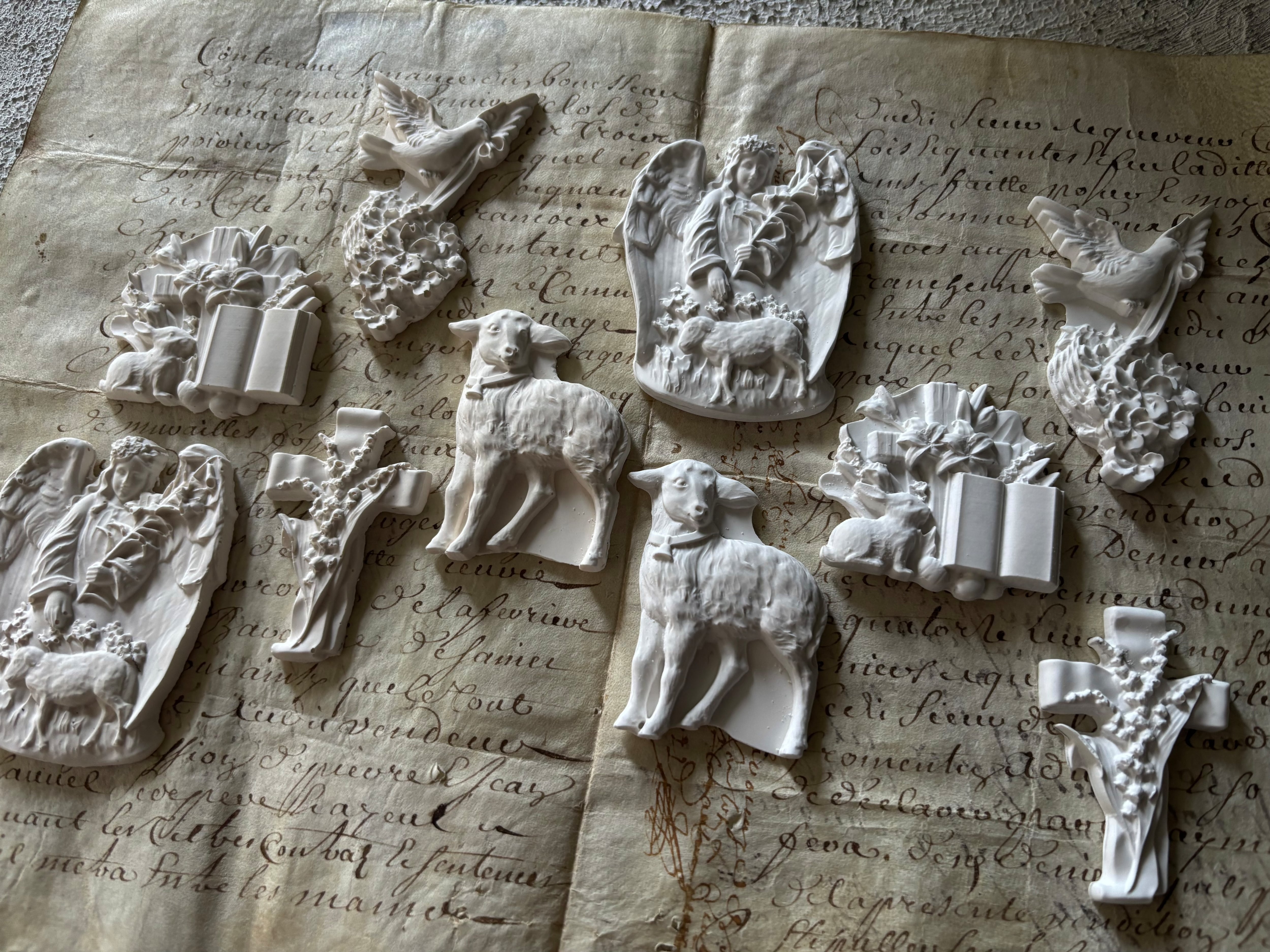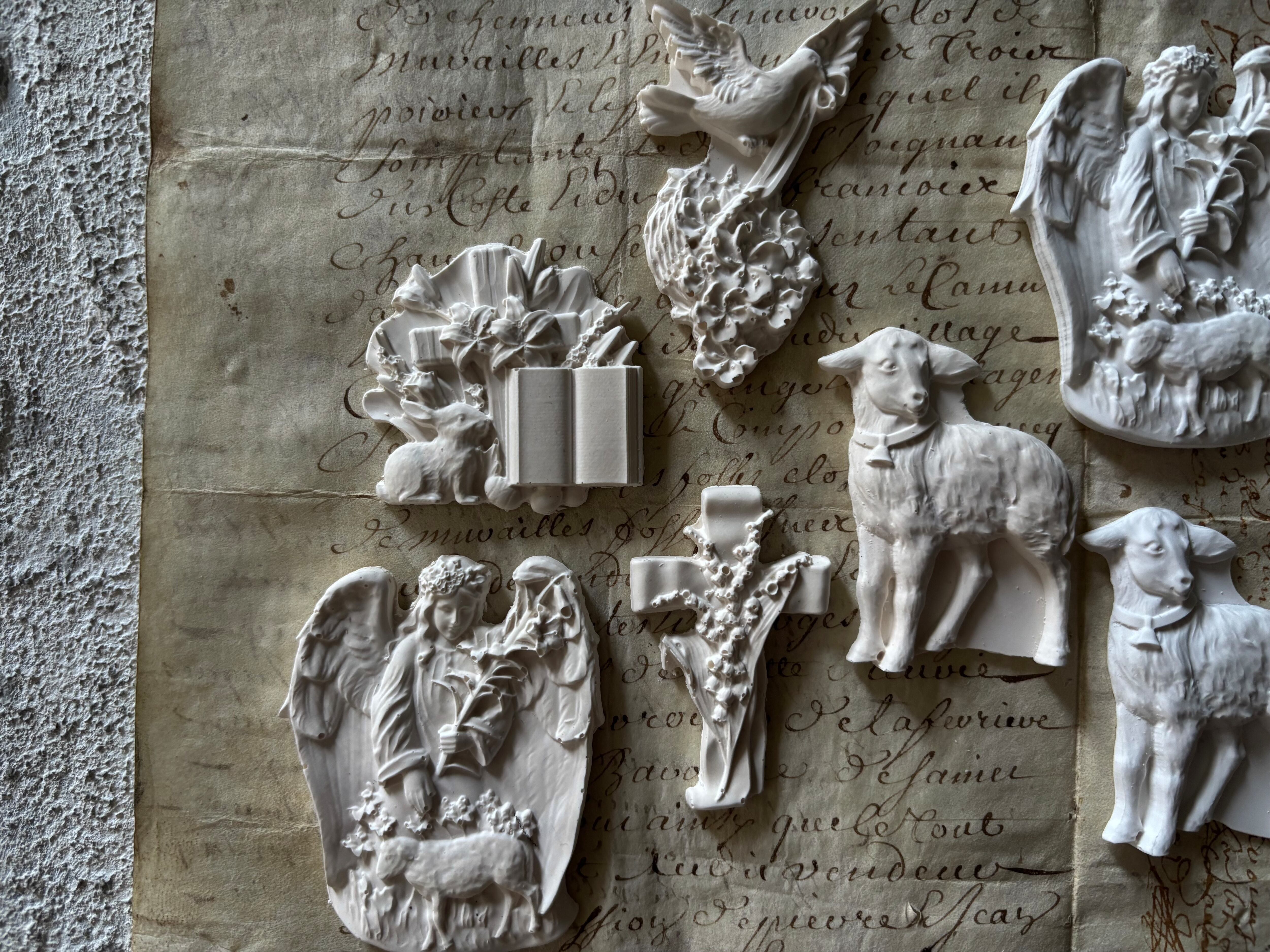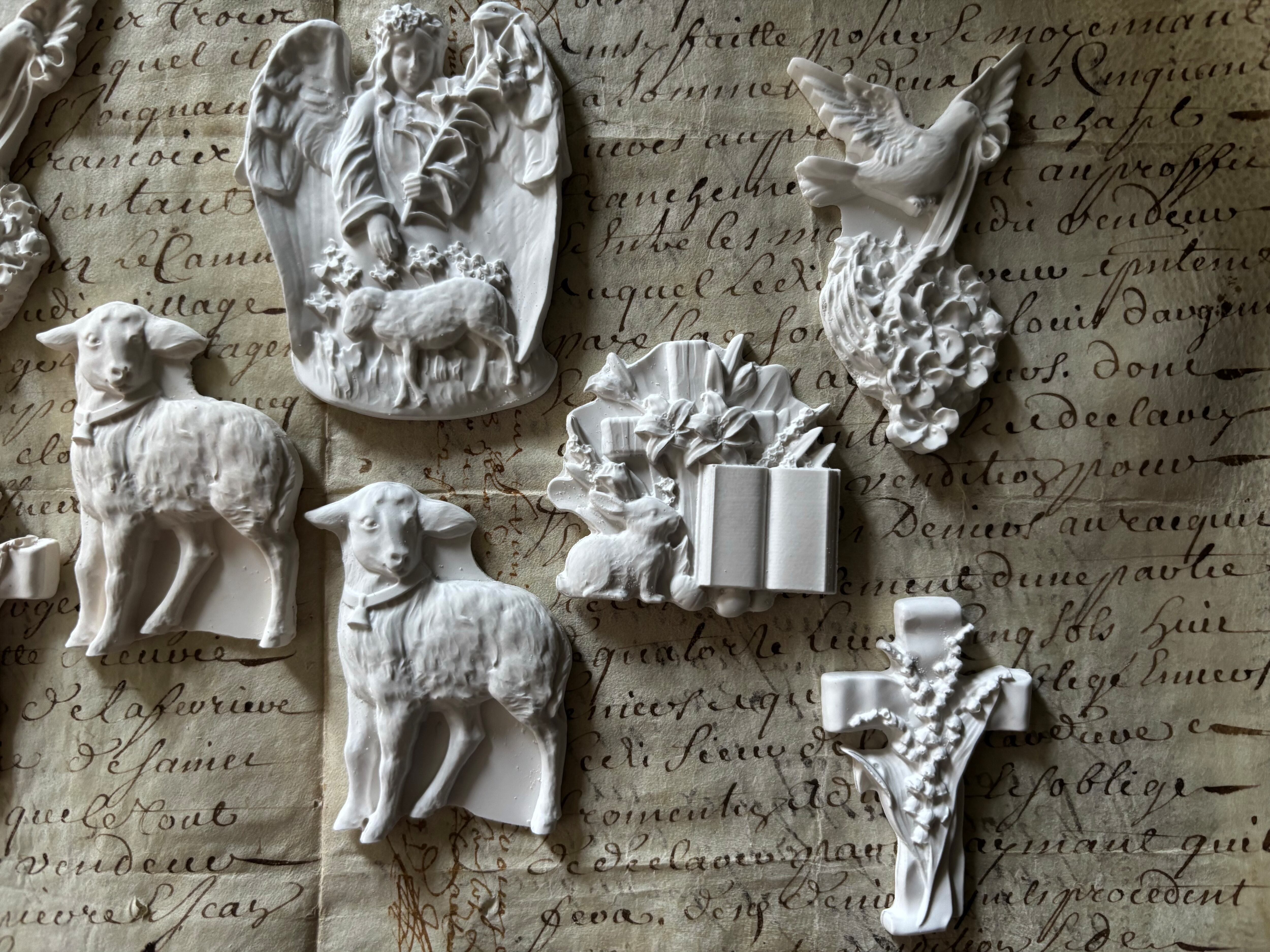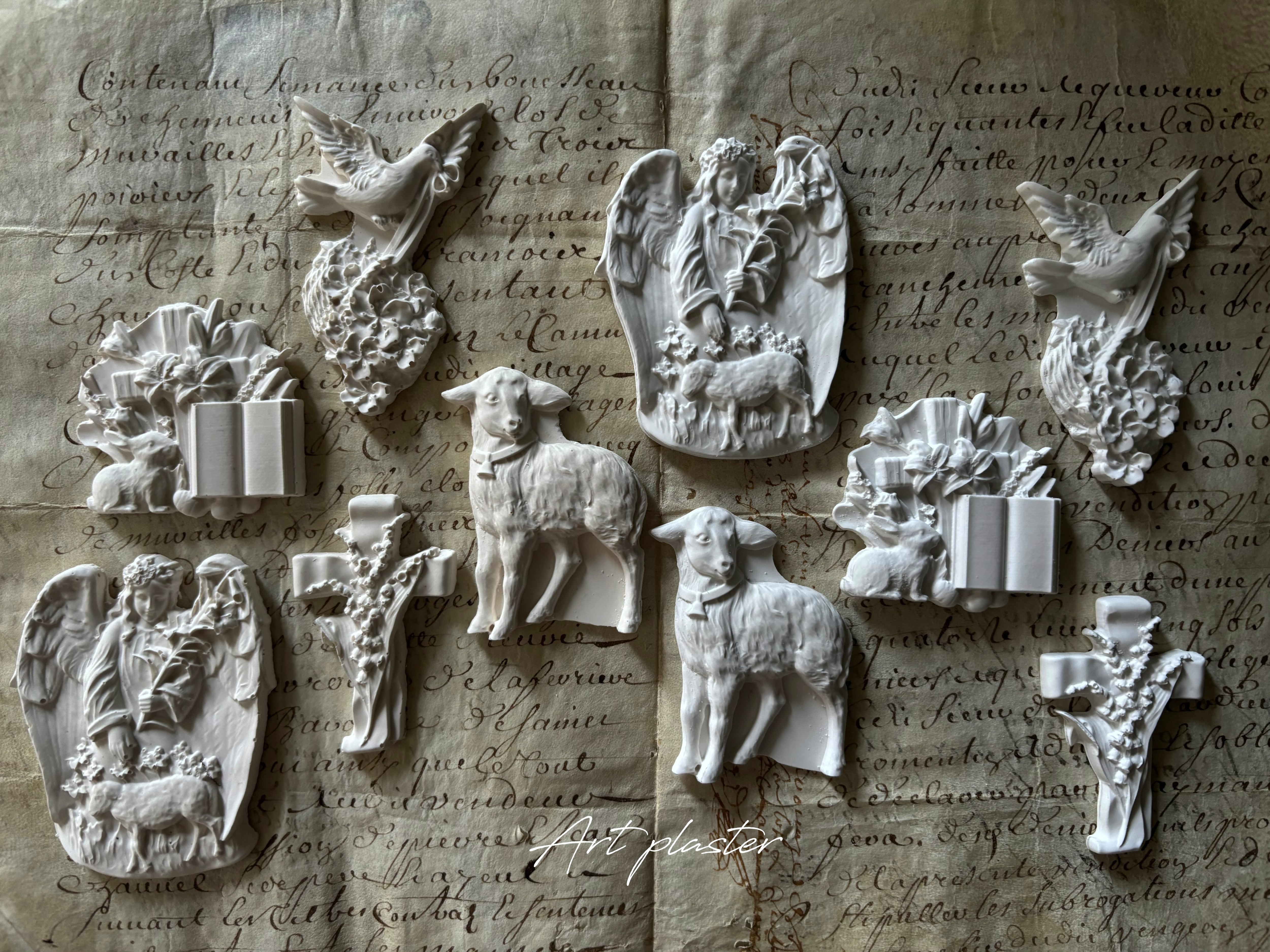 天使やすずらんの十字架、小鳥のブーケや本とうさぎさんモチーフ