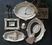 韓国の石膏、アートプラスター®を使用して寒い冬に温かいお部屋で食べたい、濃厚バニラアイス色の大型オーバルプレートとフレームセットを作りました。