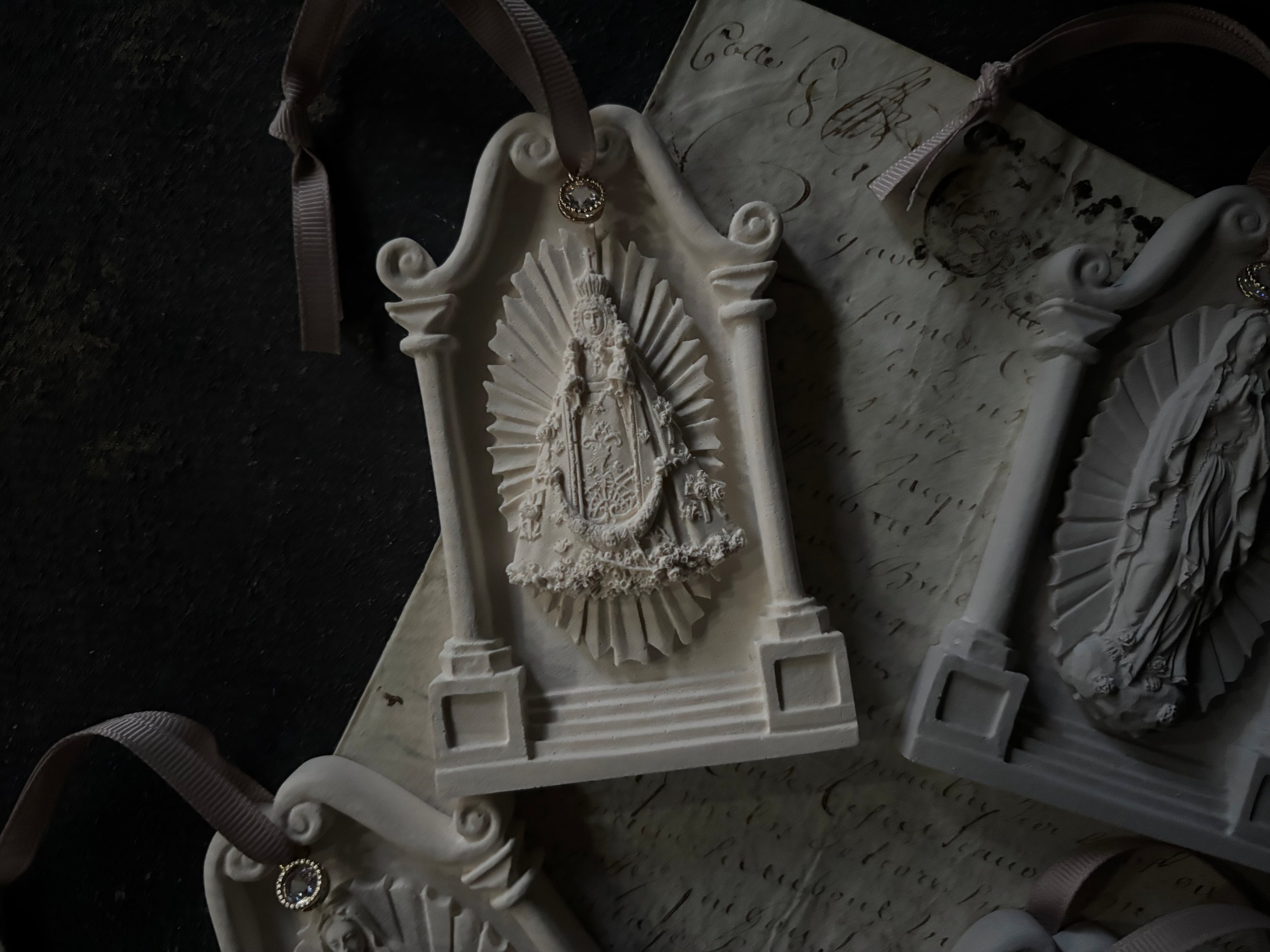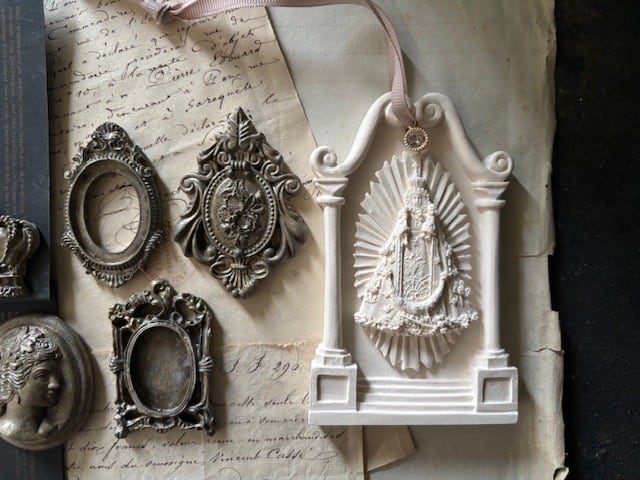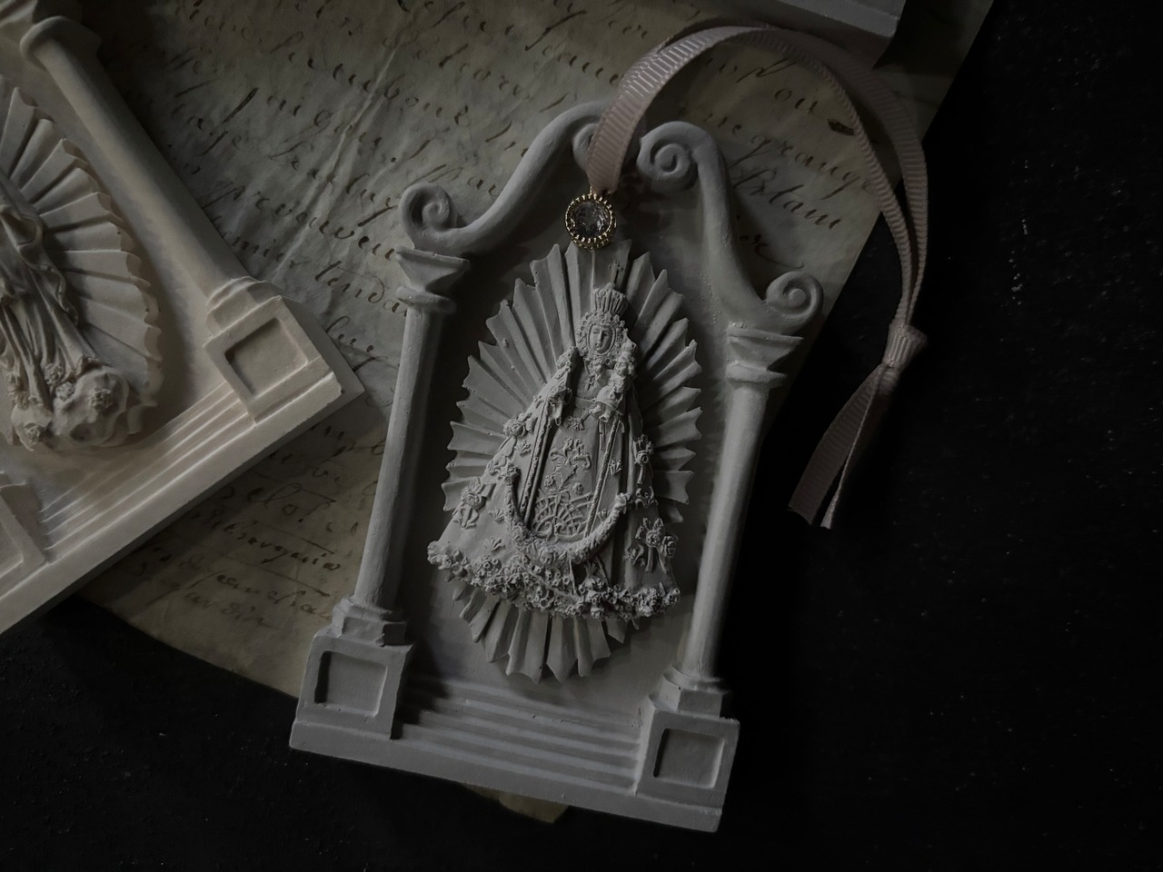 韓国の石膏、アートプラスター®を使用してくすみカラーのマリア様オーナメントプラスターを作りました。