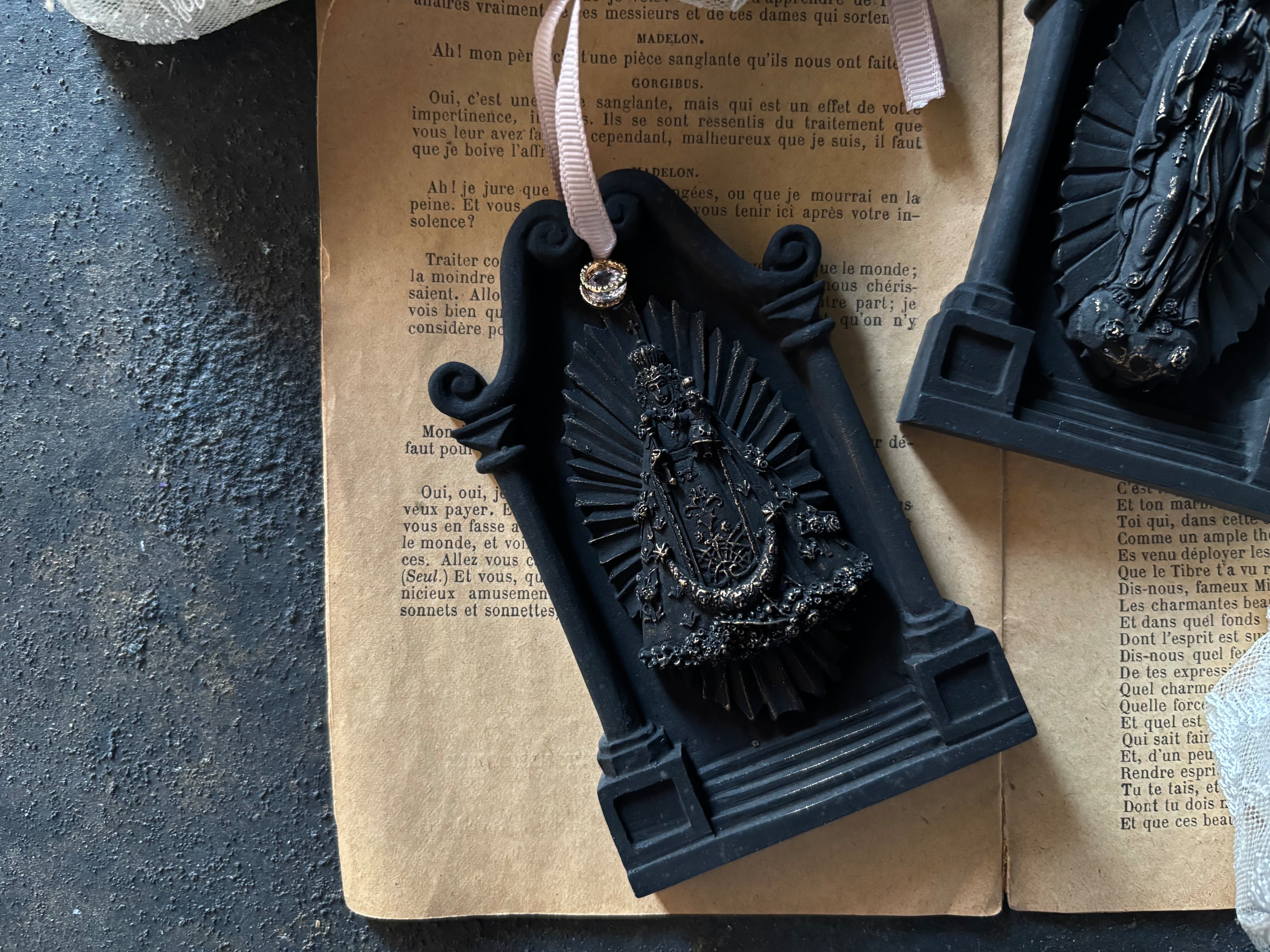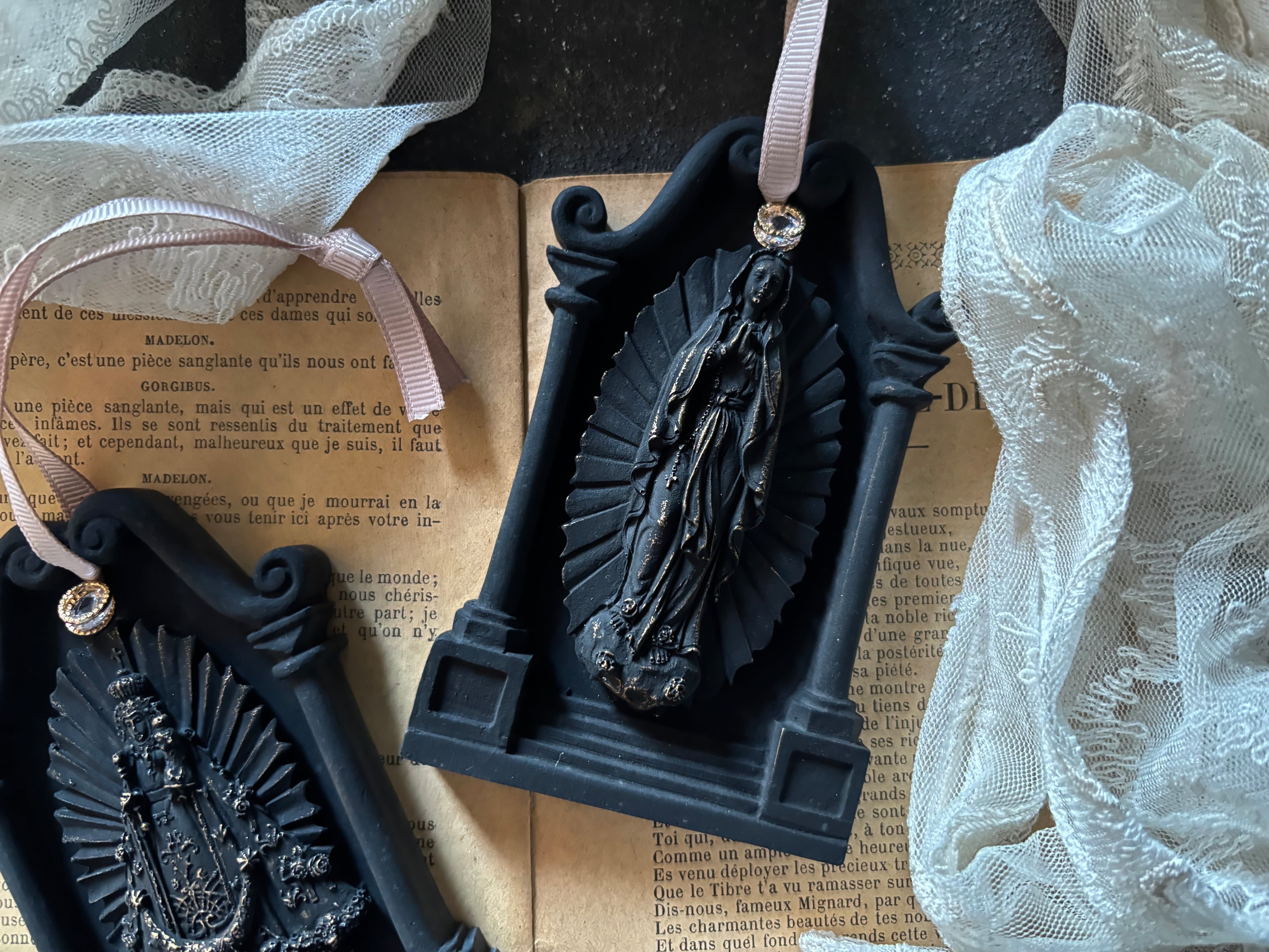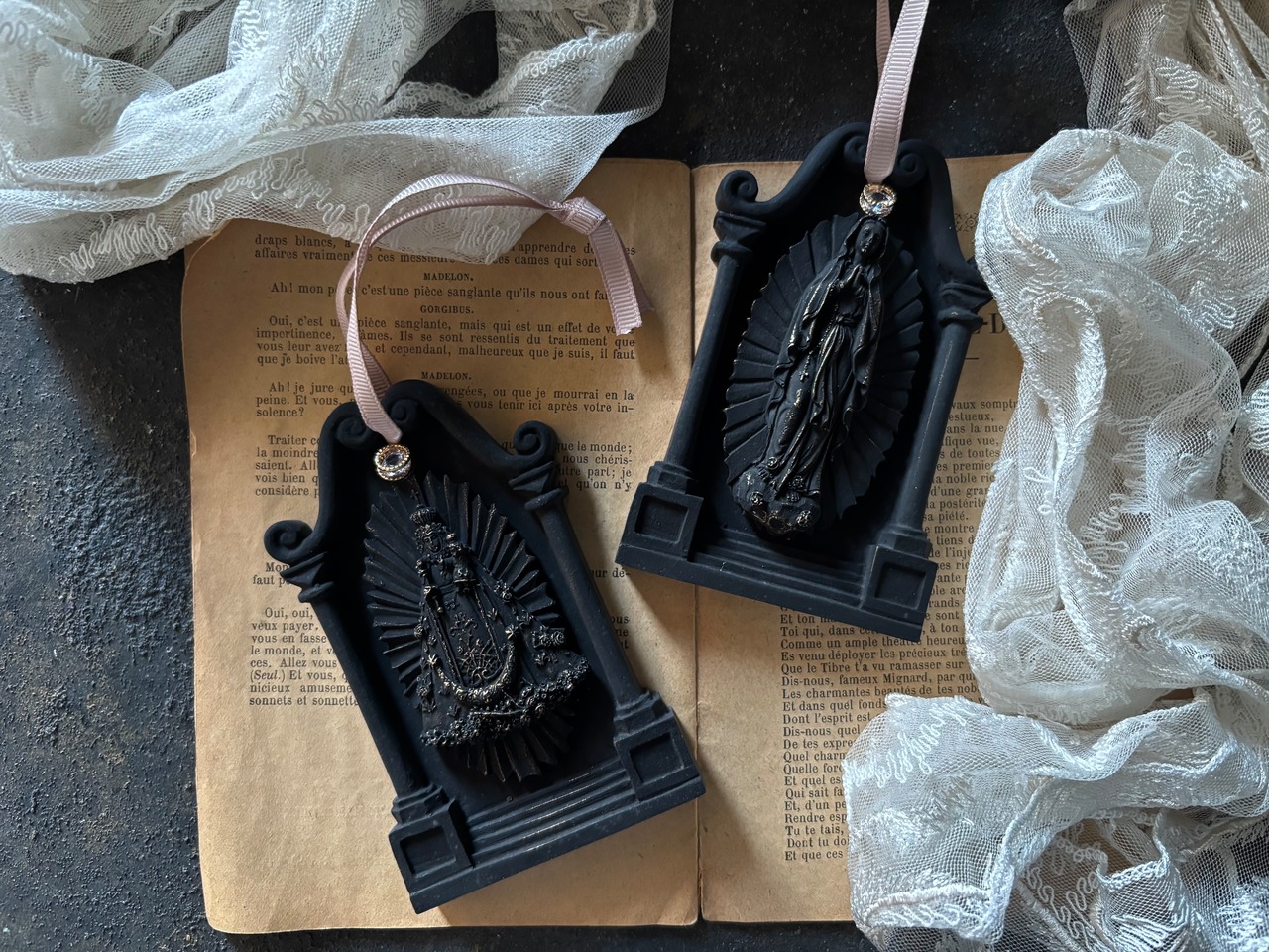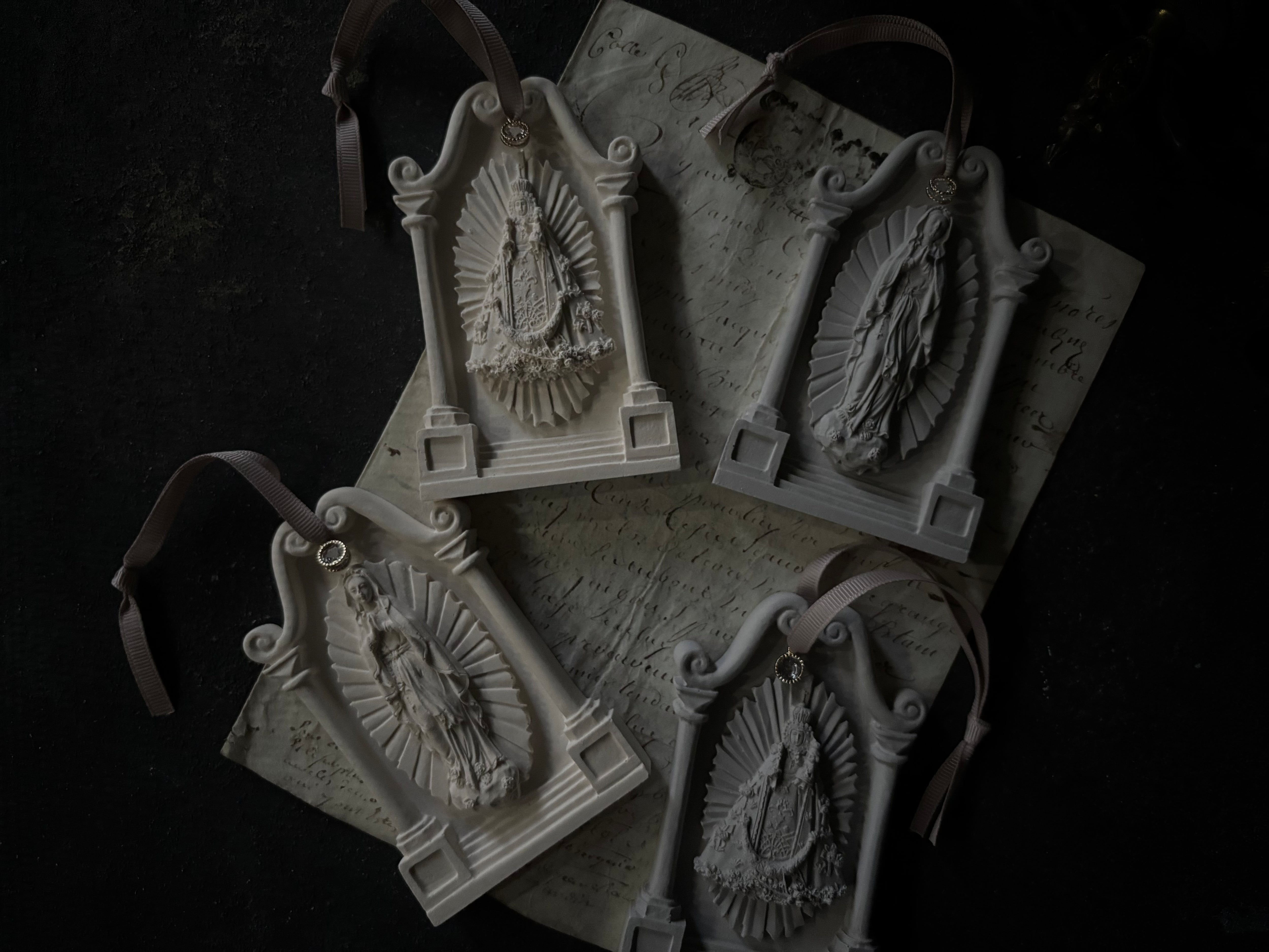 大人女性にとてもよく似合う、穏やか表情のマリア様モチーフのオーナメント型アロマストーンです。