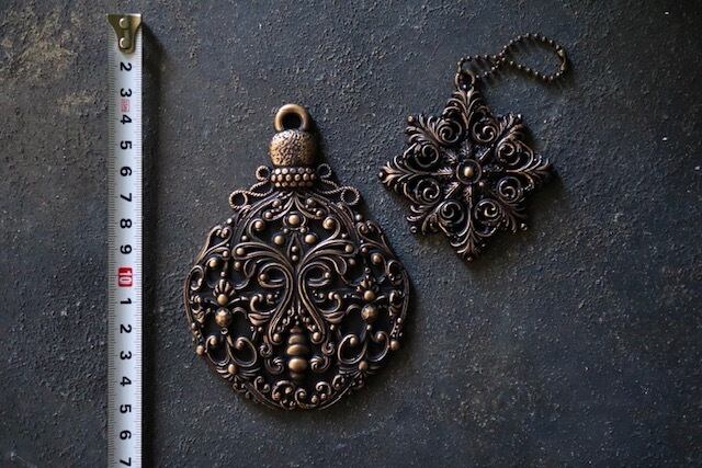 モノトーン好きなアンドエスの、黒いアンティーク風オーナメントをお届け致します。