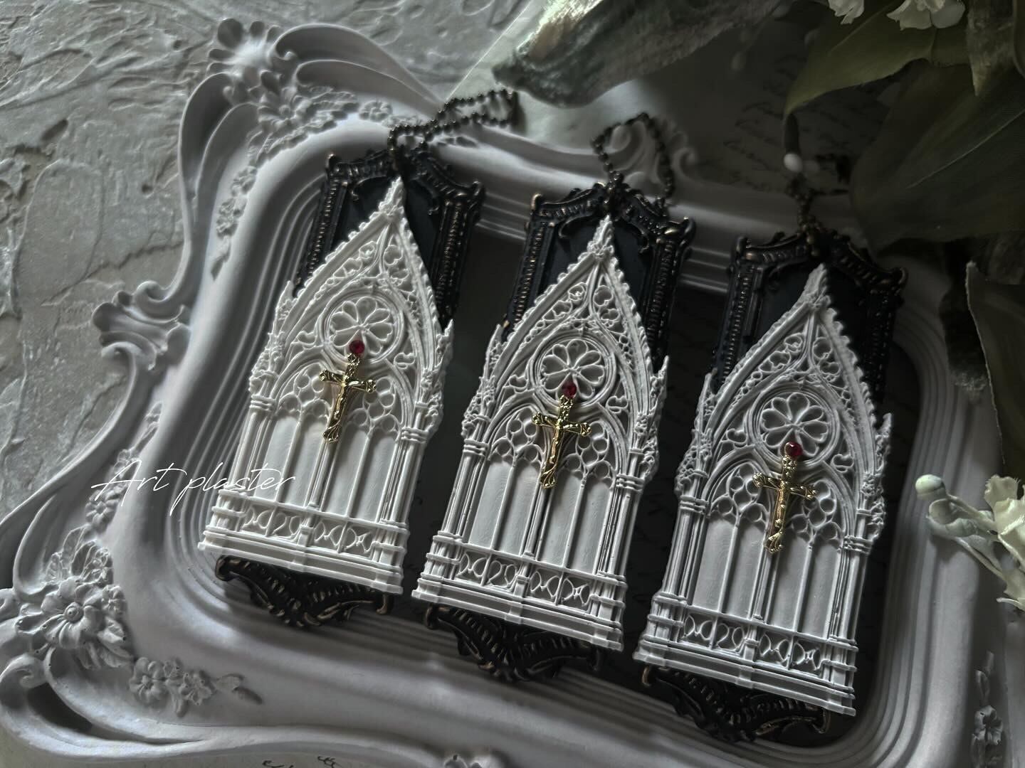 韓国の石膏を使ってアンティーク風インテリアの雰囲気を楽しめる、教会の窓をモチーフとした美しい手のひらサイズの壁掛けプラスターを作りました。